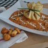 Főfogásként is fogyasztható egy tartalmas levessel. Szerintem gulyás levessel a legjobb.