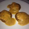 A formát óvatosan leválasztom a tésztáról és egy tűzálló tálra helyezem, a lyukakba betöltöm a húst, majd leöntöm a szafttal, visszateszem a sütőbe átforrósítani.