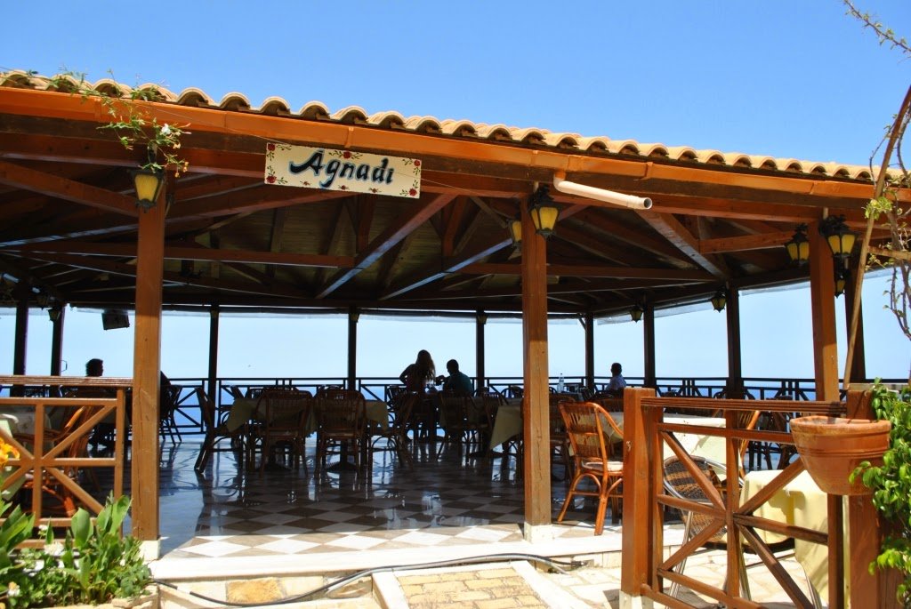 Útközben az út szélén egy kis családi tavernában álltunk meg pihenni és ebédelni. Az Agnadi Étteremben minden úgy történt, ahogy egy ilyen kis étteremnél elvárható.Van egy menülap, de ezen igazából a sztenderd ételek vannak, az igazán autentikus ételekkel kapcsolatban érdeklődni lehet, mert ebből mindennap más készül attól függően, hogy milyen húst, zöldséget sikerült frissen venni a piacon, vagy a sajátok közül vágni.