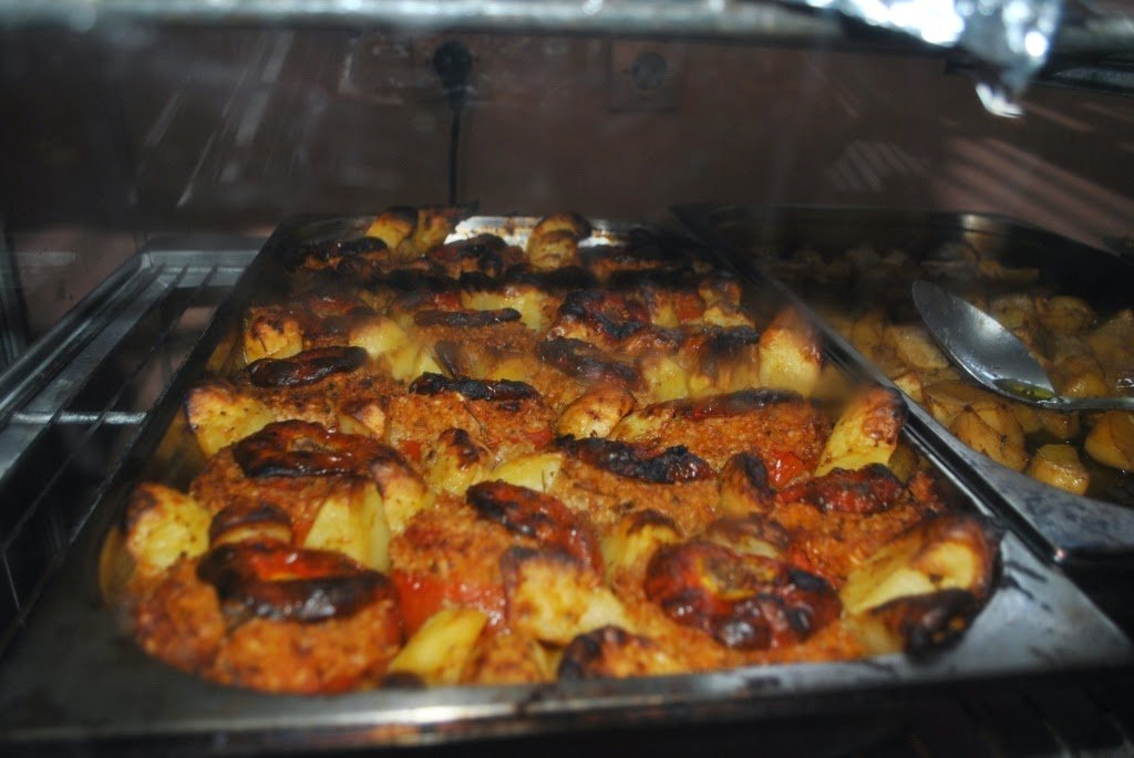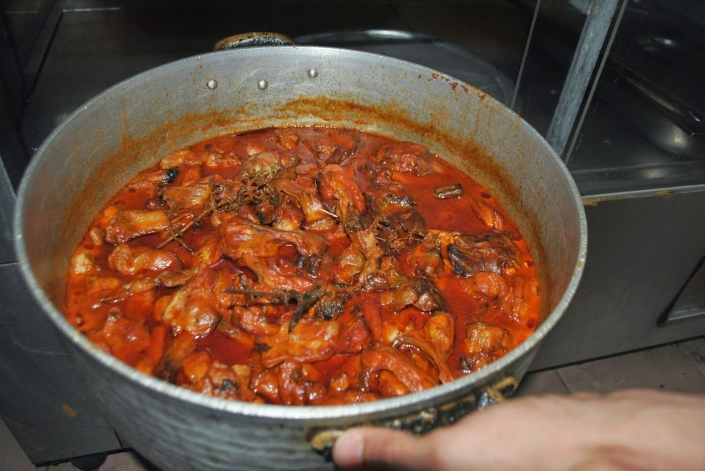Érkezik is a gőzölgő musaka és a szemtelenül nagy adag nyúl. Megszámolva a lábacskákat megállapítottuk, hogy ez bizony fél nyúl, így még az én drága jó étvágyú férjem is jóllakott vele. Nagyon nagy megtiszteltetés éri azt a vendéget aki a fejét kapja, mert az agya igazi kuriózumnak számít. Én azért kicsit örültem, hogy most kimaradtunk ebből a megtiszteltetésből. Ha megnézitek mindegyik ételt husáng méretű sült burgonya szeletekkel tálalták, ezt tényleg itt frissen szeletelték fel, nem holmi előrecsomagolt mirelit rettenetet kínáltak nekünk.