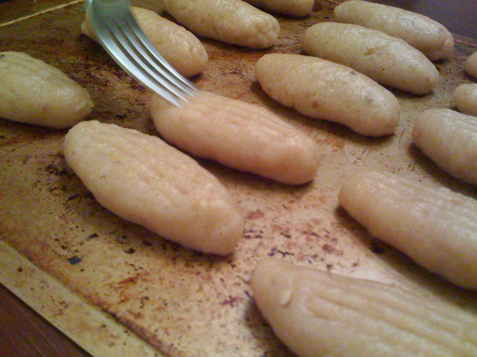 A lisztet a sütőporral és a szódabikarbónával összekeverem, majd a vajas masszához keverem és összegyúrom. A tésztából tojásméretű gombócokat gyúrok és kicsit ellapítom a tepsiben, majd egy villával hosszanti irányban csíkokat húzok rajta.