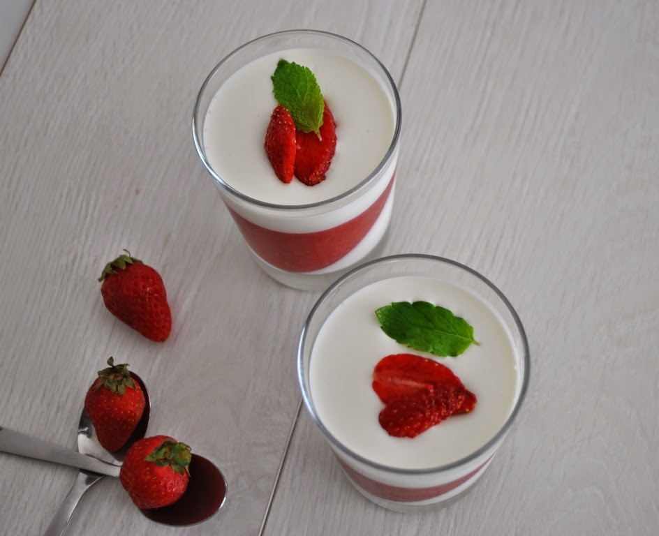 Nálunk egy nagy nyári kedvenc a panna cotta, az elkészítését nem lehet elrontani, és a végtelenségig variálható gyümölcsökkel. Már vagy 4-5 éve szeretjük, most pedig egy ilyen epres csodát találtam ki, merthogy milyen jó móka, hogy ferdén tölti be az ember az egyik réteget. Mindig büszke vagyok az ilyen ötleteimre, mert azt például nem kalkuláltam be, hogy egy rétegnek kb 5-6 óra kell, míg úgy nagyjából megszilárdul. Délután álltam neki a másnapi desszertnek, ebből kitalálhatjátok, hogy vagy éjjel háromig csináltam, vagy igazán korán keltem másnap. Hát én az utóbbit választottam, vasárnap reggel hajnali 6 órakor kipattantam az ágyból, hogy álmosan mindenféle kávé és egyéb doppingszerek nélkül megcsináljam a harmadik réteget. Férjem megkérdezte, amikor visszatértem, hogy hol voltam, nem mertem elárulni neki, hogy ennyire elvakult vagyok. Mondom csak a cicának adtam enni, majd visszaaludtam és megálmodtam, hogy nagyon fincsi lesz a desszert.