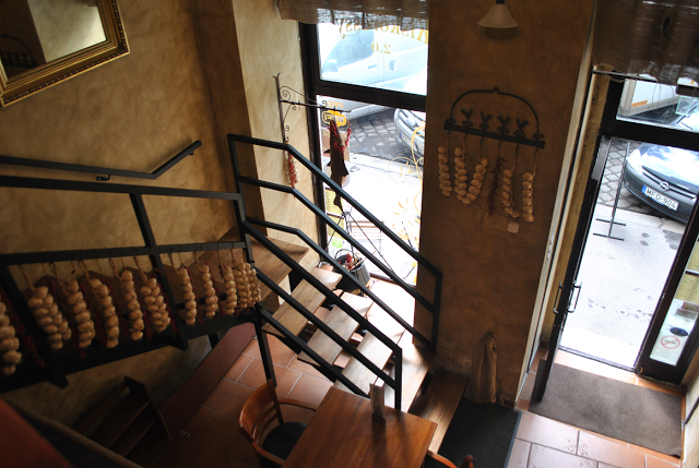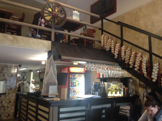 Kb. 1 hónapja hallottam egy új halétteremről a belvárosban, így a szombati sétánk után benéztünk, ahogy a most következő cikkben olvashatjátok elég jól sikerült az a kis program. Nem foglaltunk asztalt, de fél 1 körül szerencsére volt hely. Bisztró lévén egy kedves, emberközeli beülős helyről van szó, a földszinten egy kisebb asztallal és egy pulttal bárszékekkel. Az emeleten kb. 15-20 fő fér el kényelmesen. A falakat kovácsolt vas haldekorok díszítik, a lépcsőfeljárón fokhagymafüzérek lógnak, a kabátoknak kovácsoltvas állatformákkal díszített fogasok szolgálnak.