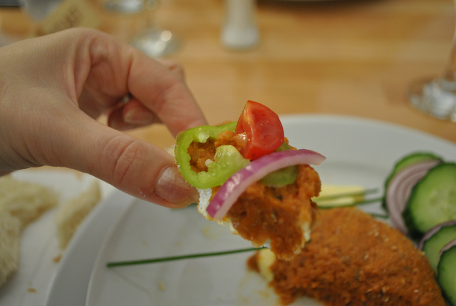 A rántott haltejet kicsit óvatosan kóstoltam, mert a belsőséget a halészlében sem szoktam megenni, azt kell mondanom, hogy teljes mértékben pozitívan csalódtam, nagyon ízlett, a mellé kínált lila hagymalekvár feldobta.
