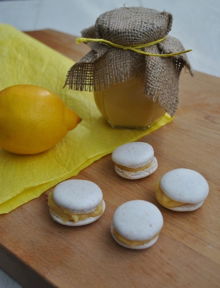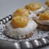 A tojásfehérjét a nyírfacukorral kemény habbá verem, majd habzsákba töltöm és sütőben 200 fokon pár perc alatt aranybarnára sütöm. Végül a karikák középere egy-egy kanál citromkrémet teszek.