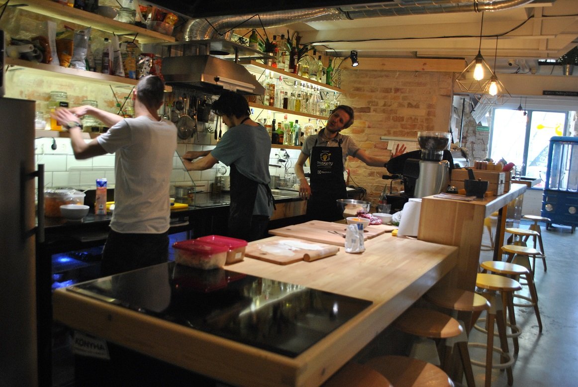 Még csak másfél hónapja, hogy megnyitott Magyarország első DIY étterme, sőt pont ilyen étterem nincs még egy a világon, így igazán egyedülálló kezdeményezésről van szó. Lendvai Ádámmal, a hely megálmodójával és tulajdonosával beszélgettünk először, majd végig főztünk egy menüt, hogy kellőképpen teszteljük a rendszert. Ádám először a Budapest Bakery-vel, vagyis az aszalt gyümölcsöket, gyümölcsleveket és egyéb finomságokat, Ring néven kínált péksüteményeket árusító helyes kis villamos és trolibusz és busz alakú kis járgányokkal vált ismertté. Ennek már két éve, most viszont ennél jóval nagyobbat álmodott, létrehozott egy olyan helyet, ahol barátokkal, ismerősökkel lehet együtt főzni, vagy kezdő randizó pároknak ad lehetőséget az ismerkedésre – Ádám megjegyezte, hogy már első randira is kifejezetten ajánlja, mert több a kontaktus lehetőség 🙂 Hahaha. De tény, hogy több lehetőség van témákat előhozni, mintha az ember egy kávéra, vagy egy hagyományos étterembe ülne be.