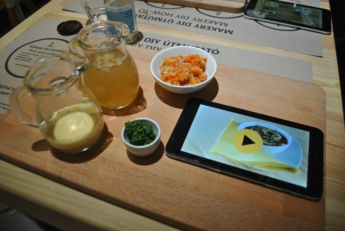 - a helyre érkezve egy tableten kapjuk az étlapot, innen választhatjuk ki, mit szeretnénk enni