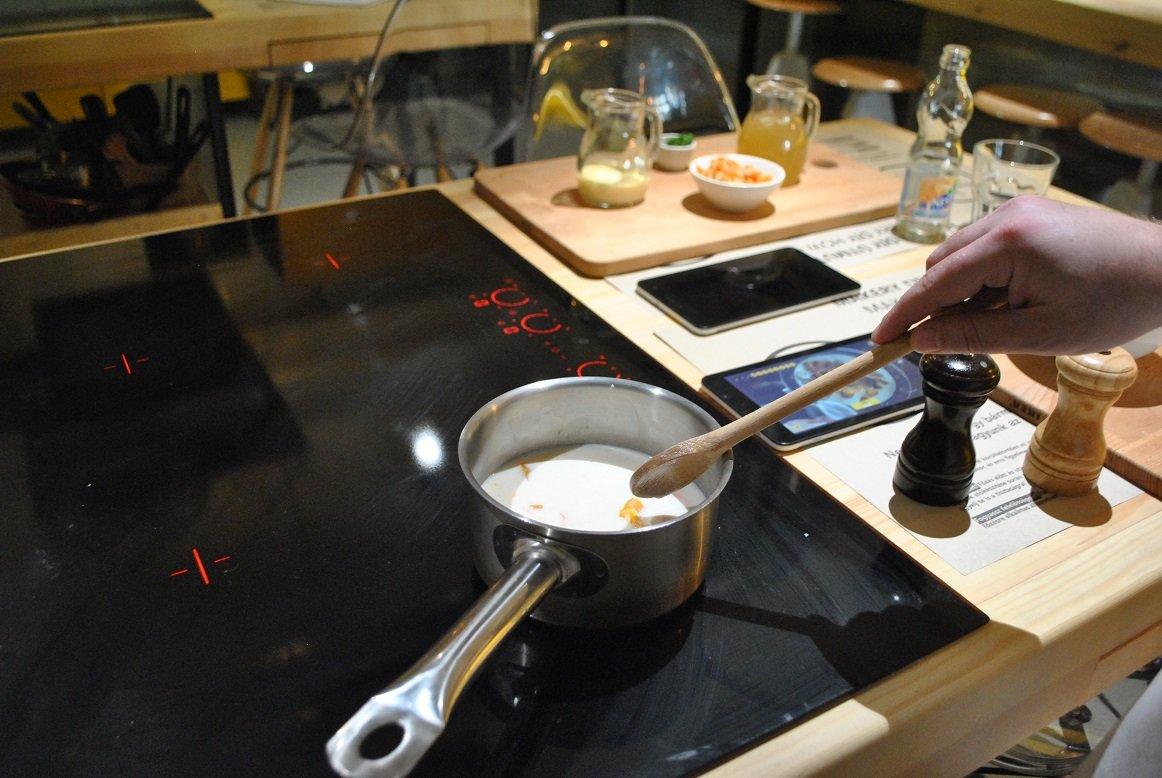 - kezdődhet a móka, a tableten az ételhez tartozó videót követve gyerekjáték az ételt elkészíteni, a folyamatok fázisokra vannak osztva, ami folyamatosan ismétli az adott fázist, amíg arról nem lépünk tovább