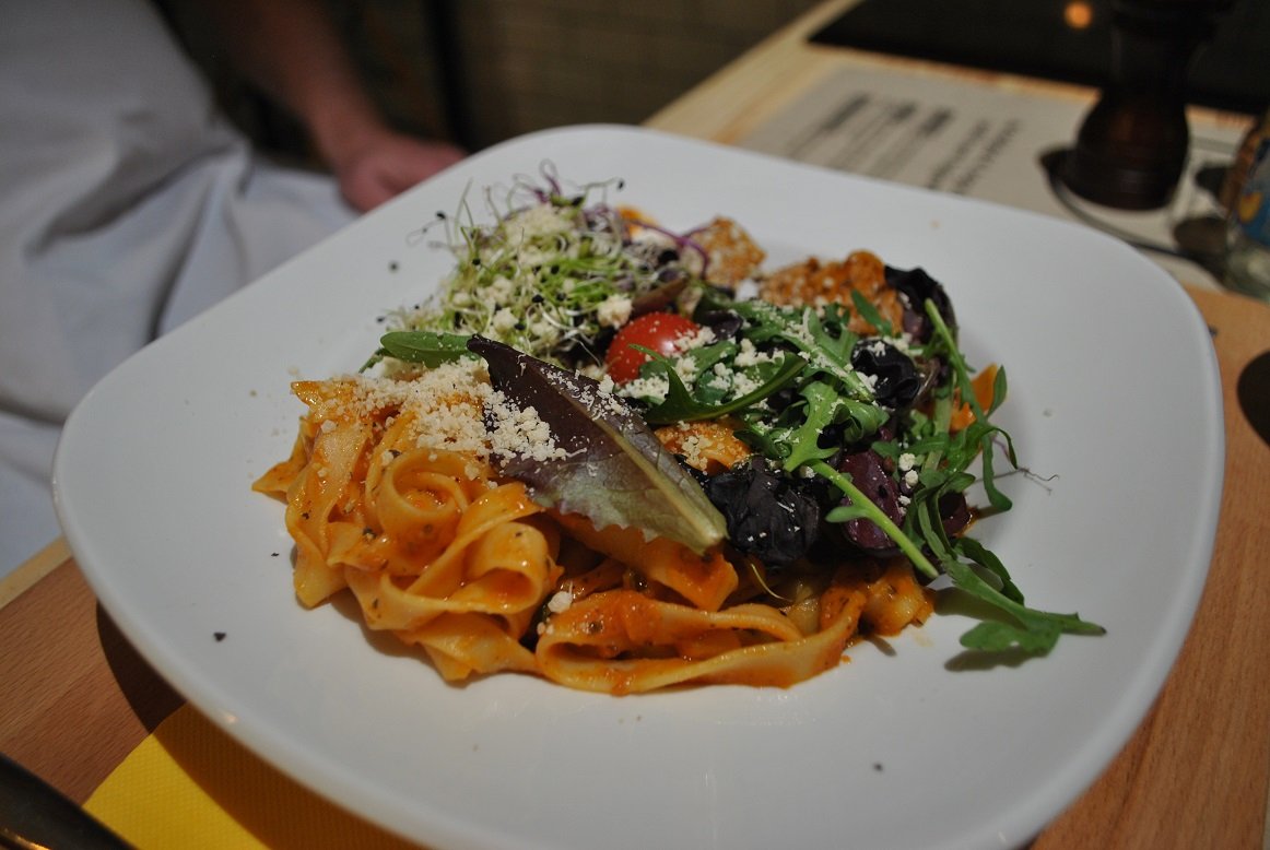 Szűzérmék vodkás-paradicsomos tagliatellével – Igazi kiadós húsétel, persze jót tesz a lelkemnek, hogy tésztával kínálják. Talán a vodkának köszönhető, de valami elképesztő finom lett a fűszeres, fokhagymás paradicsomszósz.