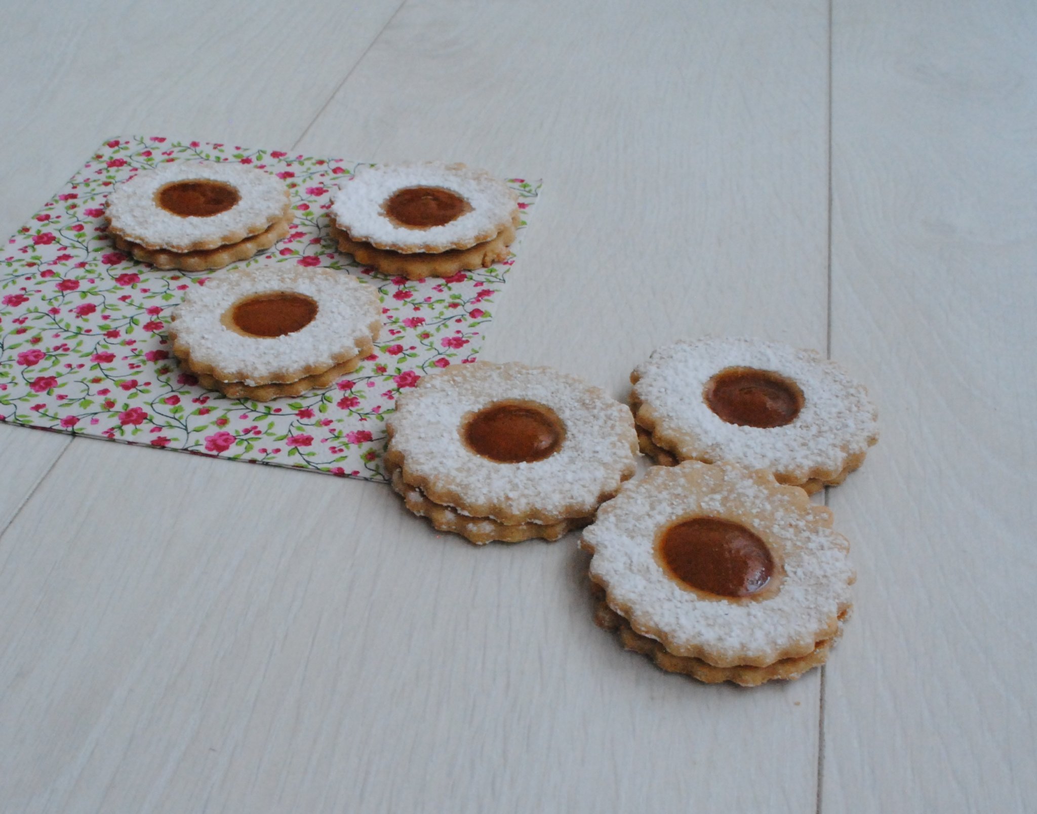 180 fokra előmelegített sütőben 8-10 perc alatt arany barnára sütöm, majd hagyom míg teljesen kihűl, végül betöltöm a lekvárral és megszóróm porcukor helyettesítővel.