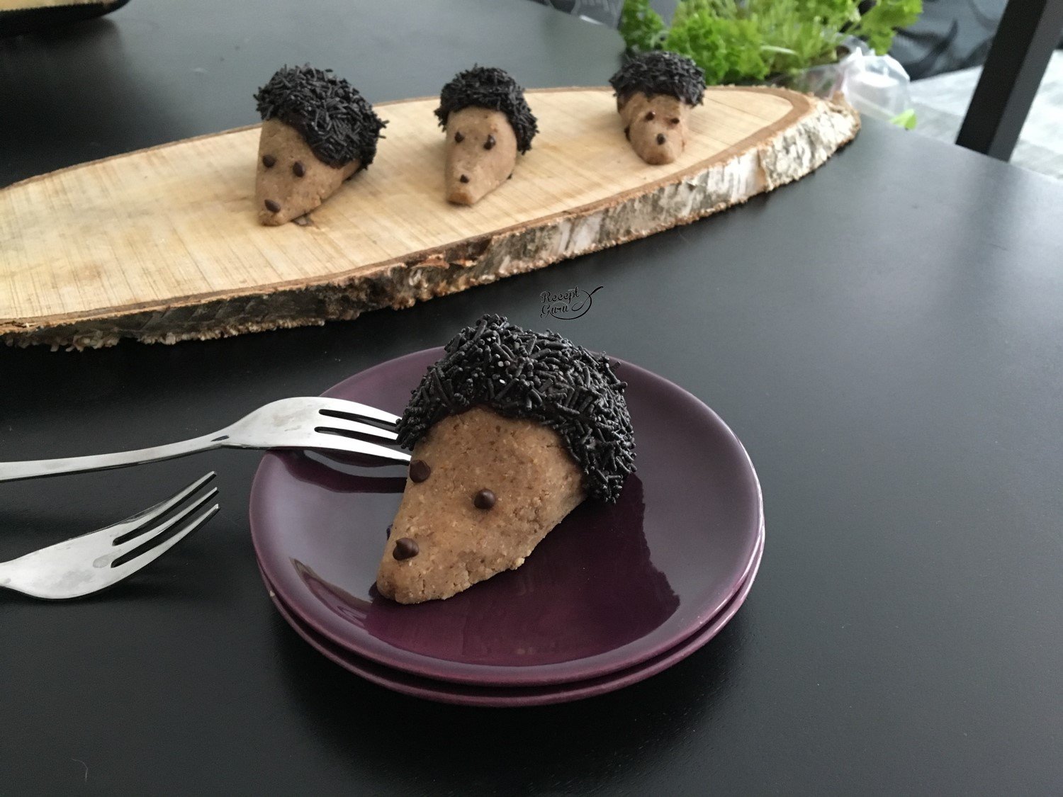Ez gyakorlatilag egy süninek formázott gesztenyegolyó, ami csak félig van mártva csokival, majd süninek díszítve. Minden sünikében egy szem meggy is található.