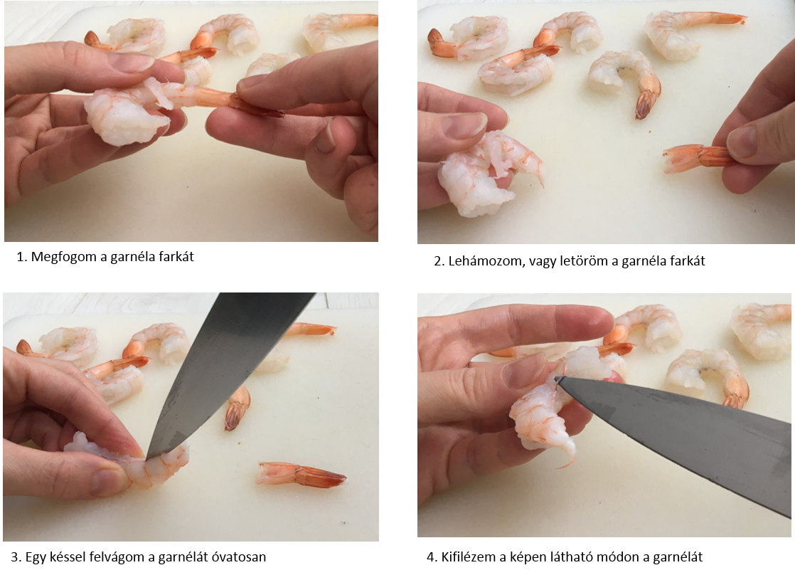 Előgőzölt, fagyasztott garnélát sikerült vennem, ami félig már filézve volt. A filézés ebben az esetben az állat bélcsatornájának eltávolítását jelenti, a külső görbület mentén fel volt vágva, viszont a belső részen nem. Bajom nem hiszem, hogy lenne tőle, viszont mivel ezt felismertem már nem ettem volna jó szájízzel ezzel a tudattal. Az egészben a lényeg, hogy a farokrész eltávolítása után a görbület mentén, kicsi mélységben be kell vágni az állatot és már el is távolítható ami nem oda való. Megjegyzem, hogy a farokrész eltávolítása nélkül nem lehet ezt a részt kiszedni, így felmerült bennem a kérdés, hogy azokban az étteremben, ahol pl a látvány miatt farokkal együtt tálalják az állatot akkor minden esetben azt jelenti, hogy ezt nem távolították el? Na ennek majd egyszer utána járok. Addig is ez alapján te is könnyedén kifilézheted.