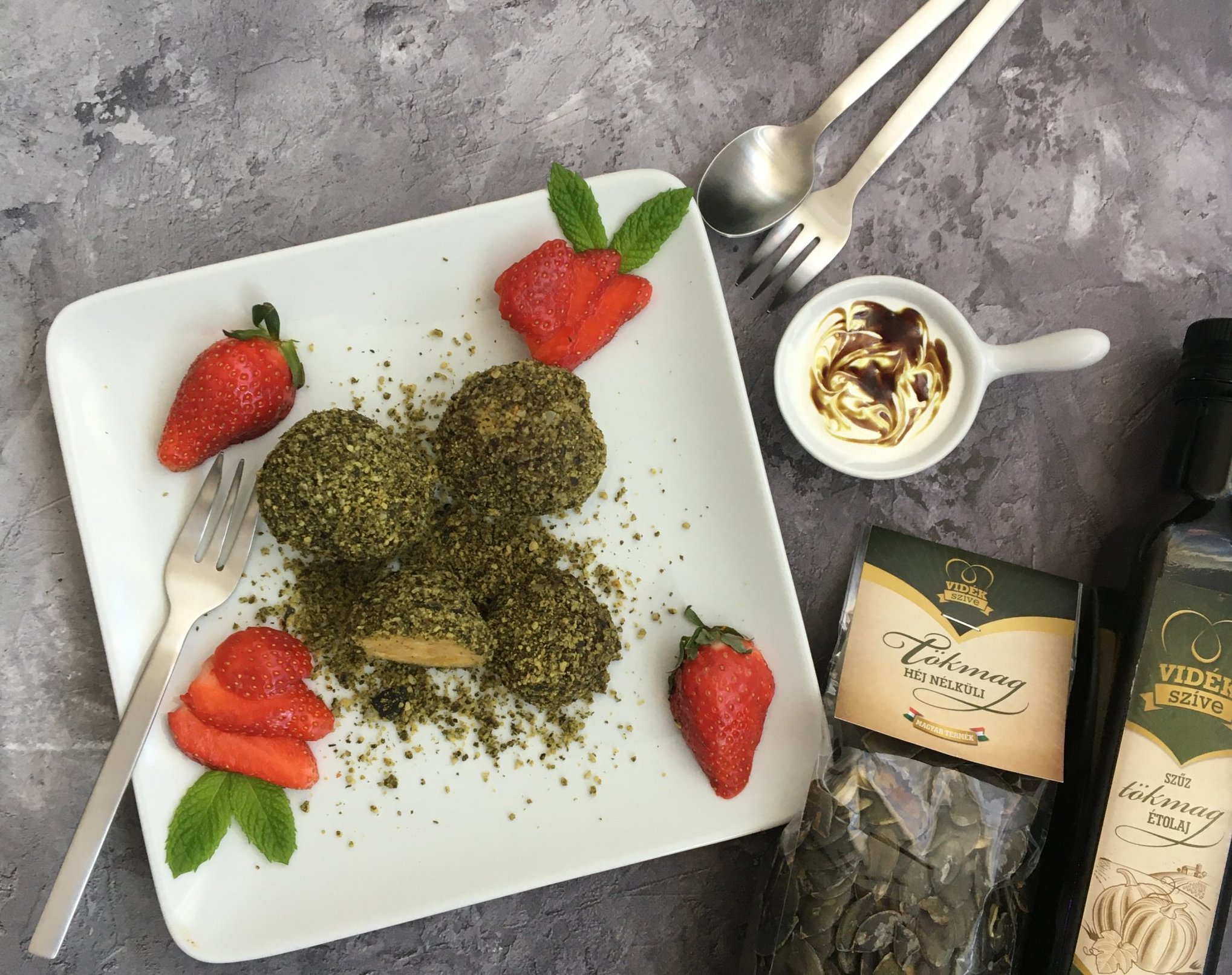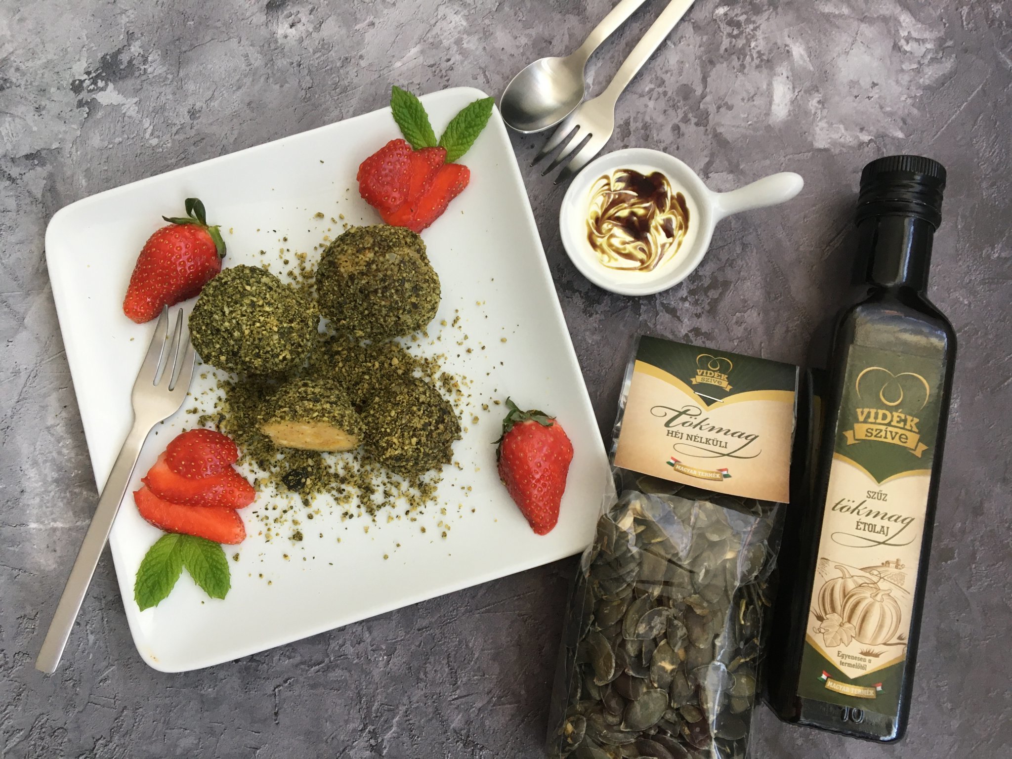 Golyókat formázok belőle, majd lobogó sós vízbe kifőzöm és darált tökmagba hempergetem. Hát ennyi volt ilyen egyszerű ez a finomság.