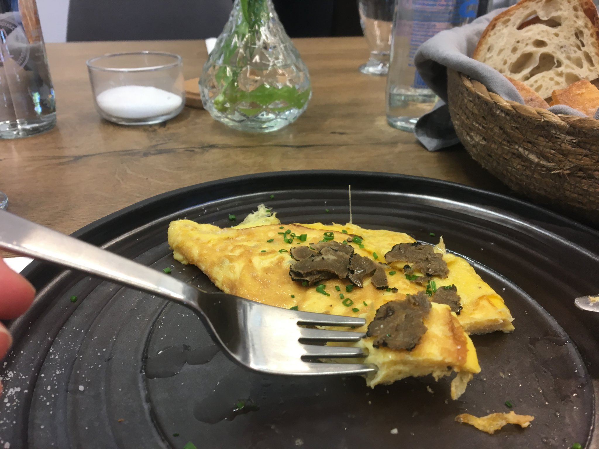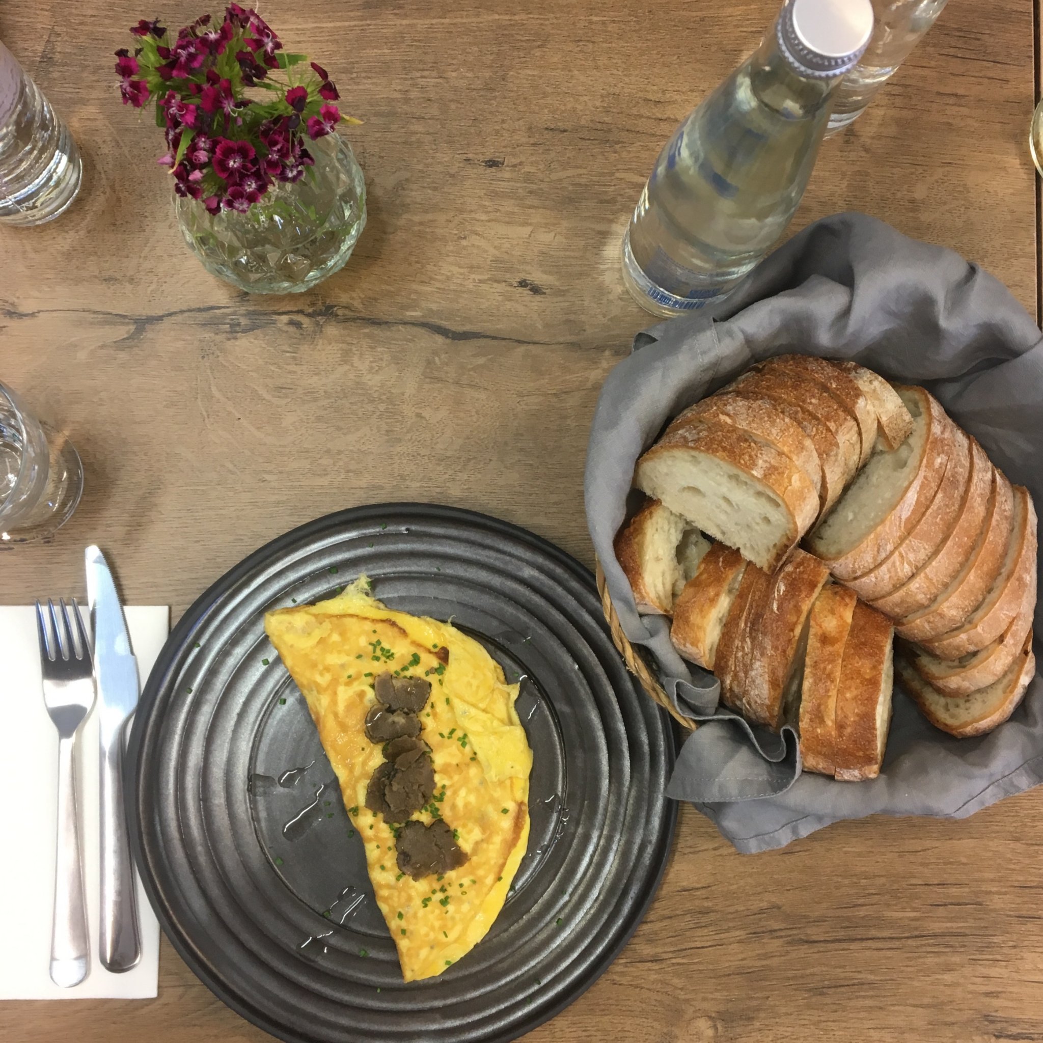 Az sajtóreggelin a sok érdekes információn túl természetesen ettünk is, nem is akármit, természetesen YouTyúk rántottát, mesés szarvasgomba szeletekkel a tetején. A szarvasgomba sem a boltból érkezett, hiszen Farkas Szilvia szarvasgombász hozta, melyet személyesen gyűjtött két kiképzett kutyájával az erdőből. Egy mesés rántottához dukál egy békebeli kenyér is, mely már szinte mesébe illő volt a Sárika családi pékség kovászolt kenyerével. Még sose hallottam senkit a kovászolt kenyérről ennyit mesélni, tetszett, igazán élvezetes volt.