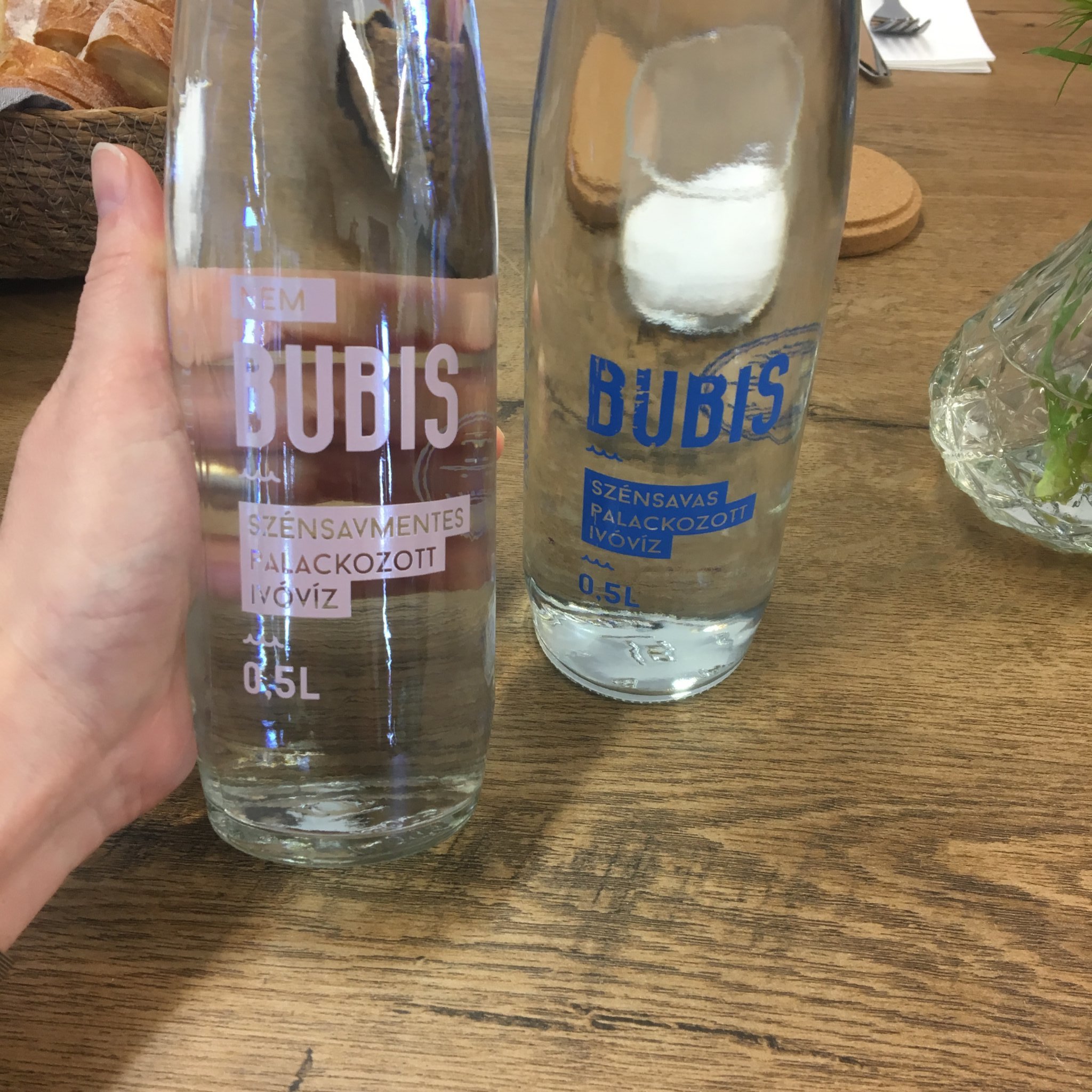 Szomjoltásra pedig üvegben kínált BUBIS vizet ittunk, természetesen volt NEM BUBIS változat is. A tiszta forrásvíz, üvegpalackba zárva, ennyire egyszerű. Nagyon jól csúszott a finom falatokra.